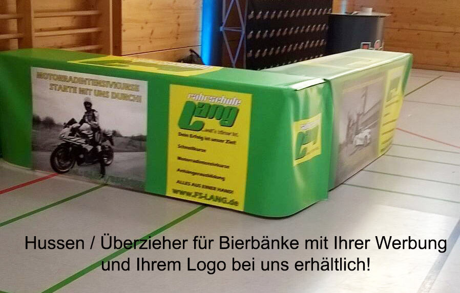 Auch für Bierbänke bekommen Sie bei uns eine kostengünstige Lösung um Ihre Werbung zu präsentieren.