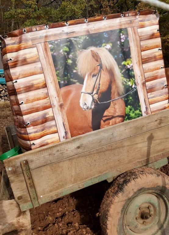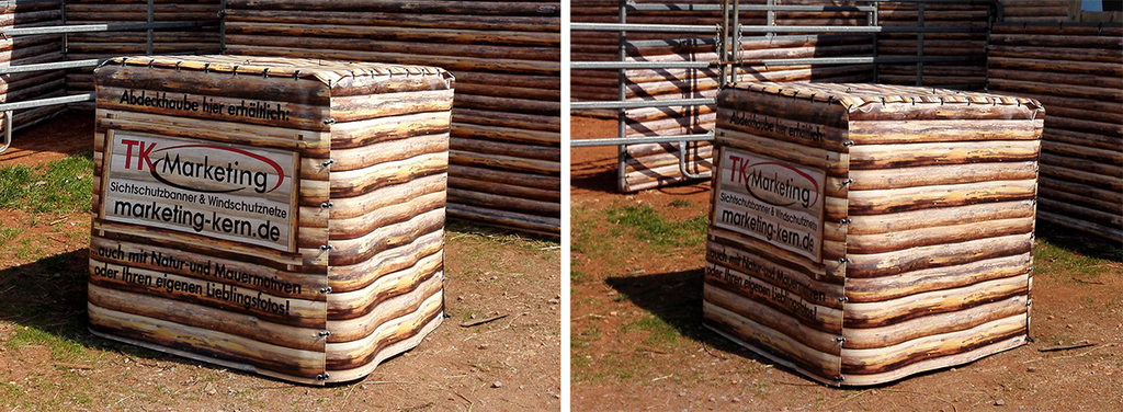 Die Schutzhüllen werden aus PVC Plane mit einer Materialstärke von 510g/qm gefertigt und mit einem Motiv nach Wahl bedruckt. Sie können sich sowohl unter dem Menüpunkt "Motive für Sichtschutzbanner / Digitaldruck für Pferdefreunde" zwischen einem unserer Natur-Mauer-oder Holzmotiven entscheiden oder Ihre Lieblingsfotos, Ihr Firmenlogo oder Ihren Gestütsnamen aufgedruckt bekommen.