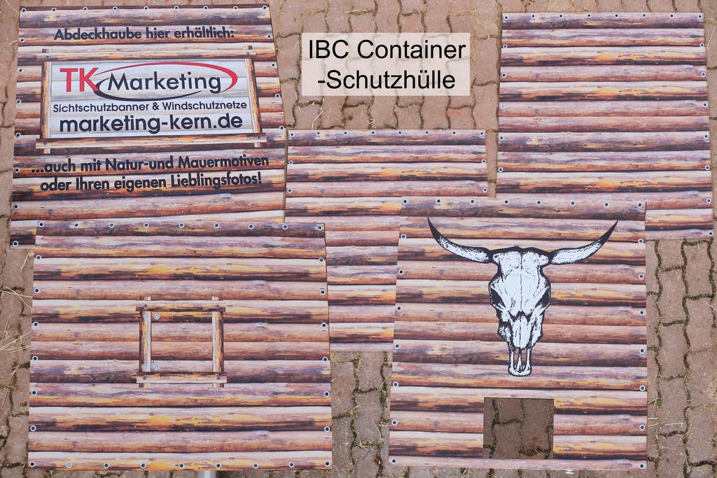 Auf diesen IBC-Container-Hüllen könnte auch Ihre Werbung stehen oder Ihre Lieblingsfotos abgebildet sein!