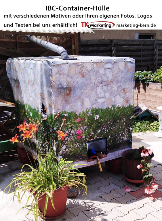 Die IBC-Hussen sind mit all unseren Motiven und mit Ihren Fotos, Texten und Logos bedruckbar!