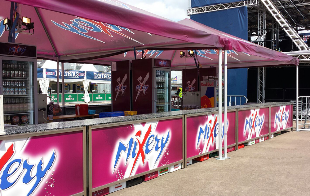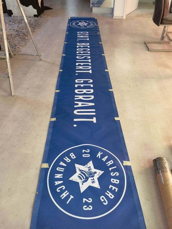 Wir bedrucken Zelte, Pavillons, Teppiche, Aufkleber, Fußbodenaufkleber, aufblasbare Werbeträger und vieles mehr.