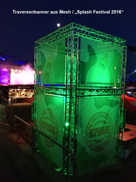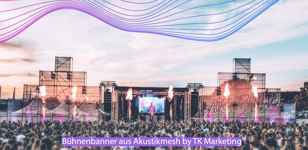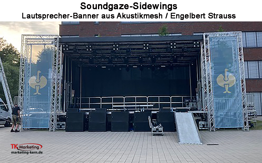 Es wird aus einem speziellem Gewebe gefertigt, welches Schallwellen quasi ungehindert hindurchlässt. Dieses einzigartige Material kommt als PA Wing, bzw. Bühnenbanner zur Installation vor großen Lautsprecheranlagen zum Einsatz.